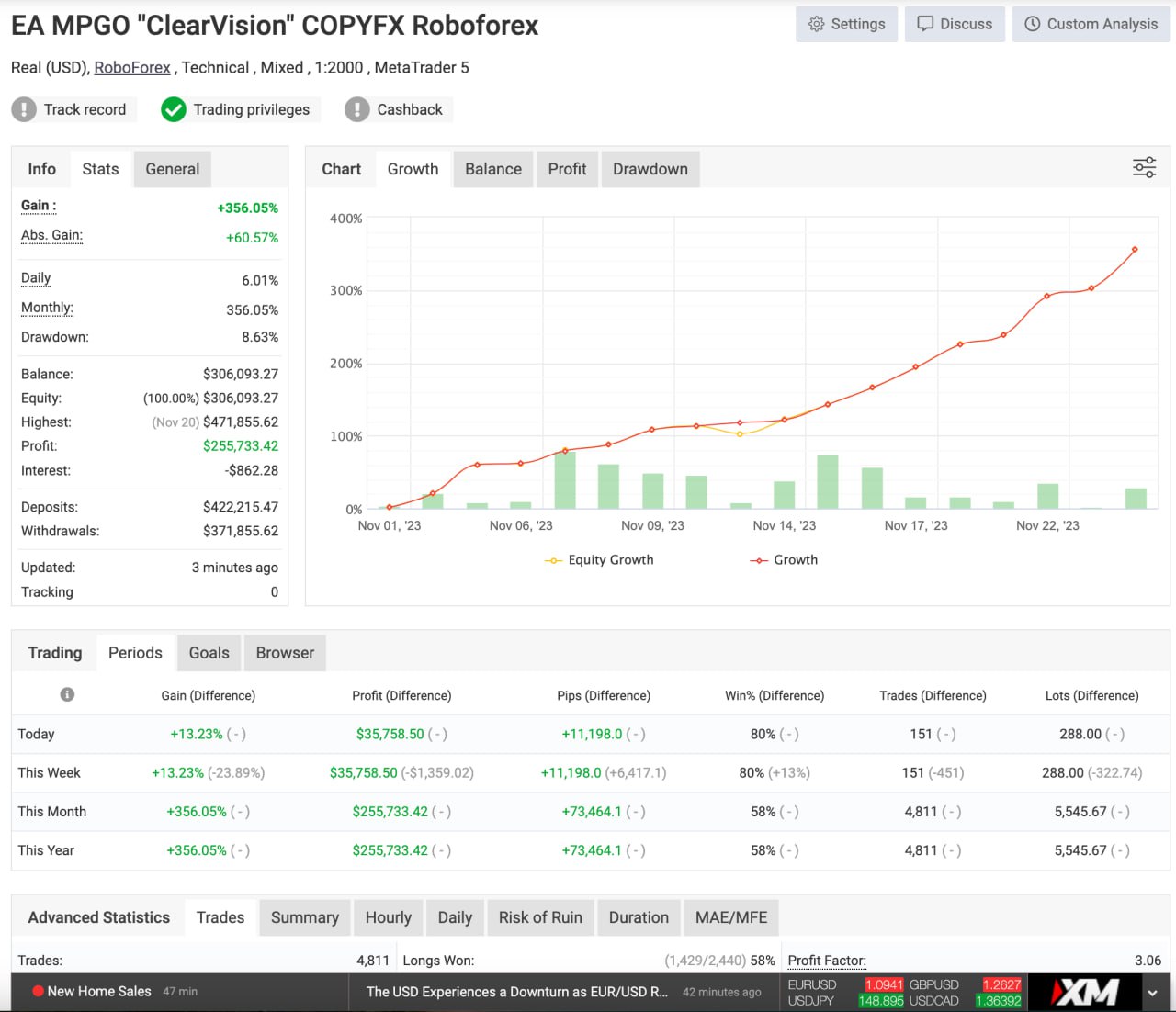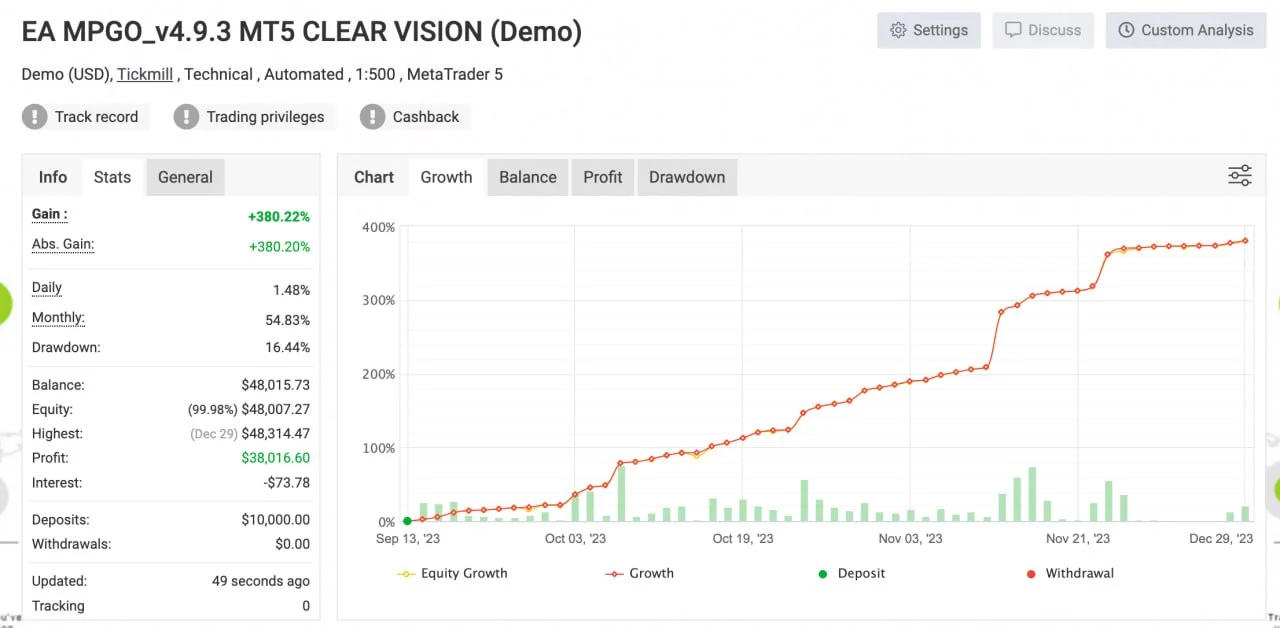 Automated trading MT5 robot EA MPGO v5.0.0 with "ClearVision" method